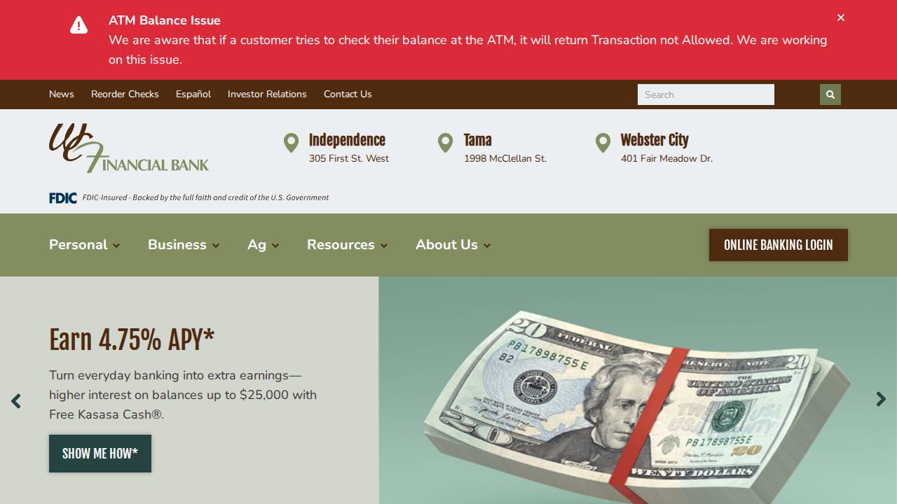 WCF Financial Bank is a full-service community bank serving the families, farms and businesses of Webster City, Independence and Tama.